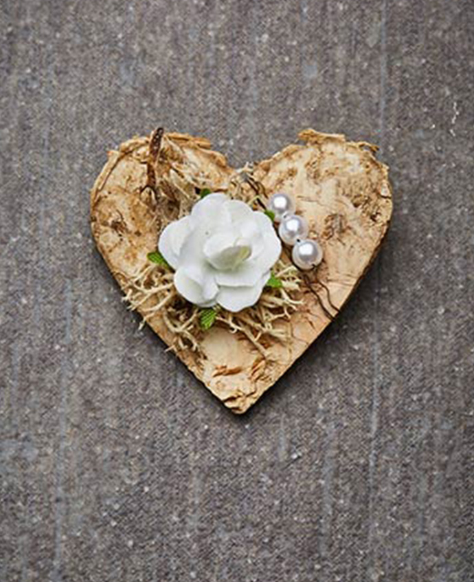 Birkenherz ca. 4cm, Draht und Perlen, Moos und Rosen