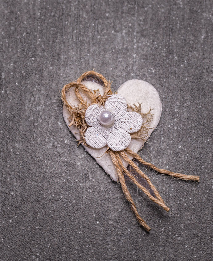 Filzherz mit Spitzenblume, Bohemian Style