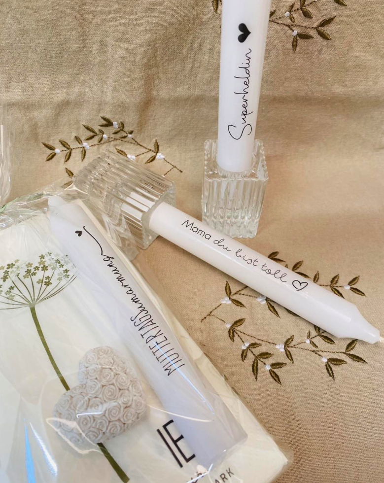 Sie wünschen sich ein personalisiertes Geschenk oder ein ausgefallenes, selbstgestaltetes Unikat? Bei uns werden Ihre Ideen Wirklichkeit: Wir entwerfen und fertigen Dekorationen, Kerzen, Einladungen und liebevolle Details direkt vor Ort – ganz nach Ihren Vorstellungen.